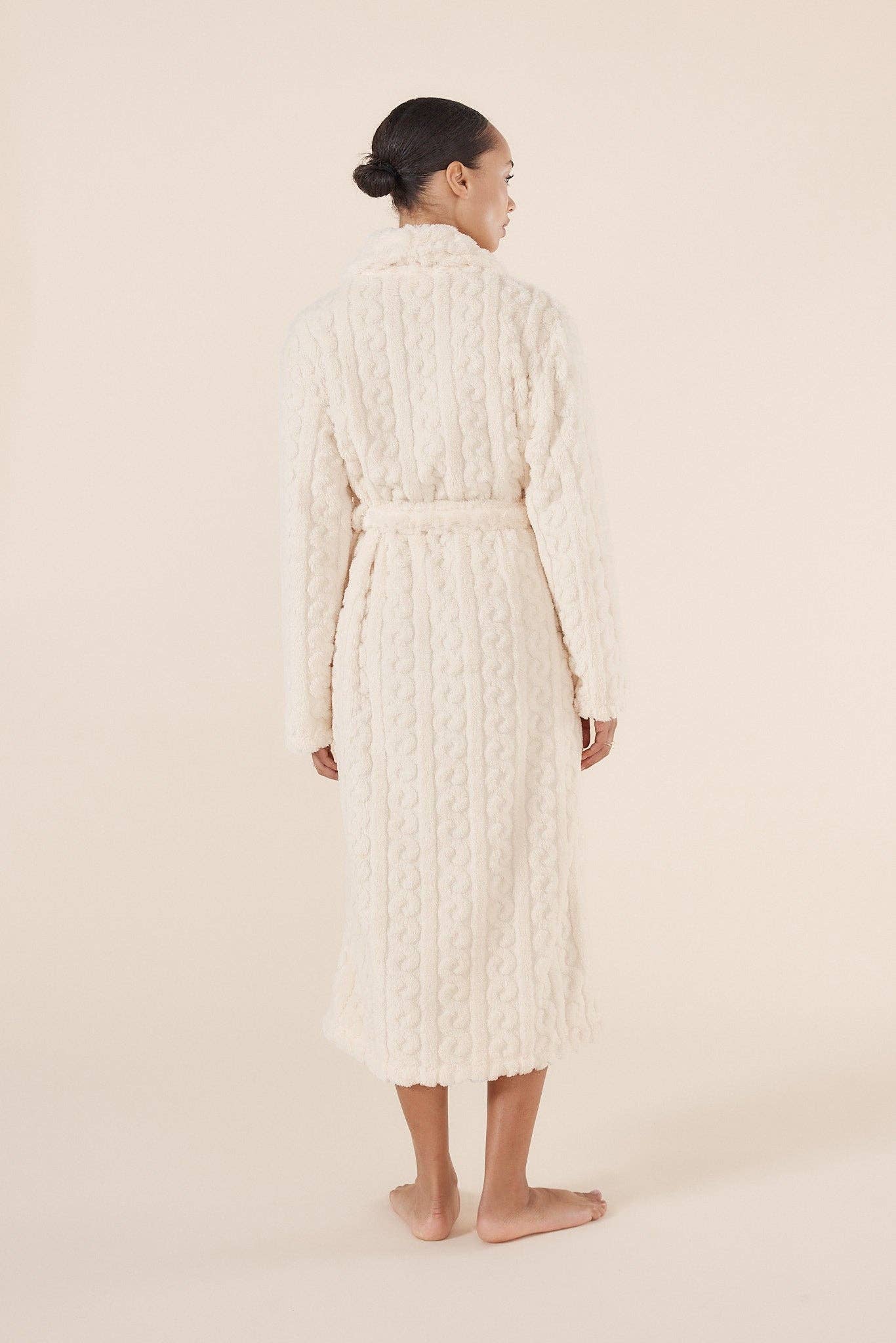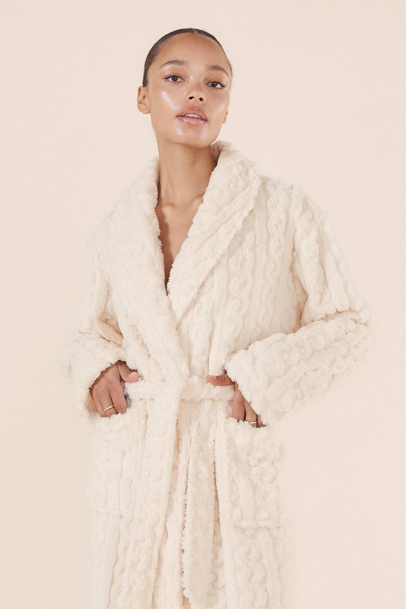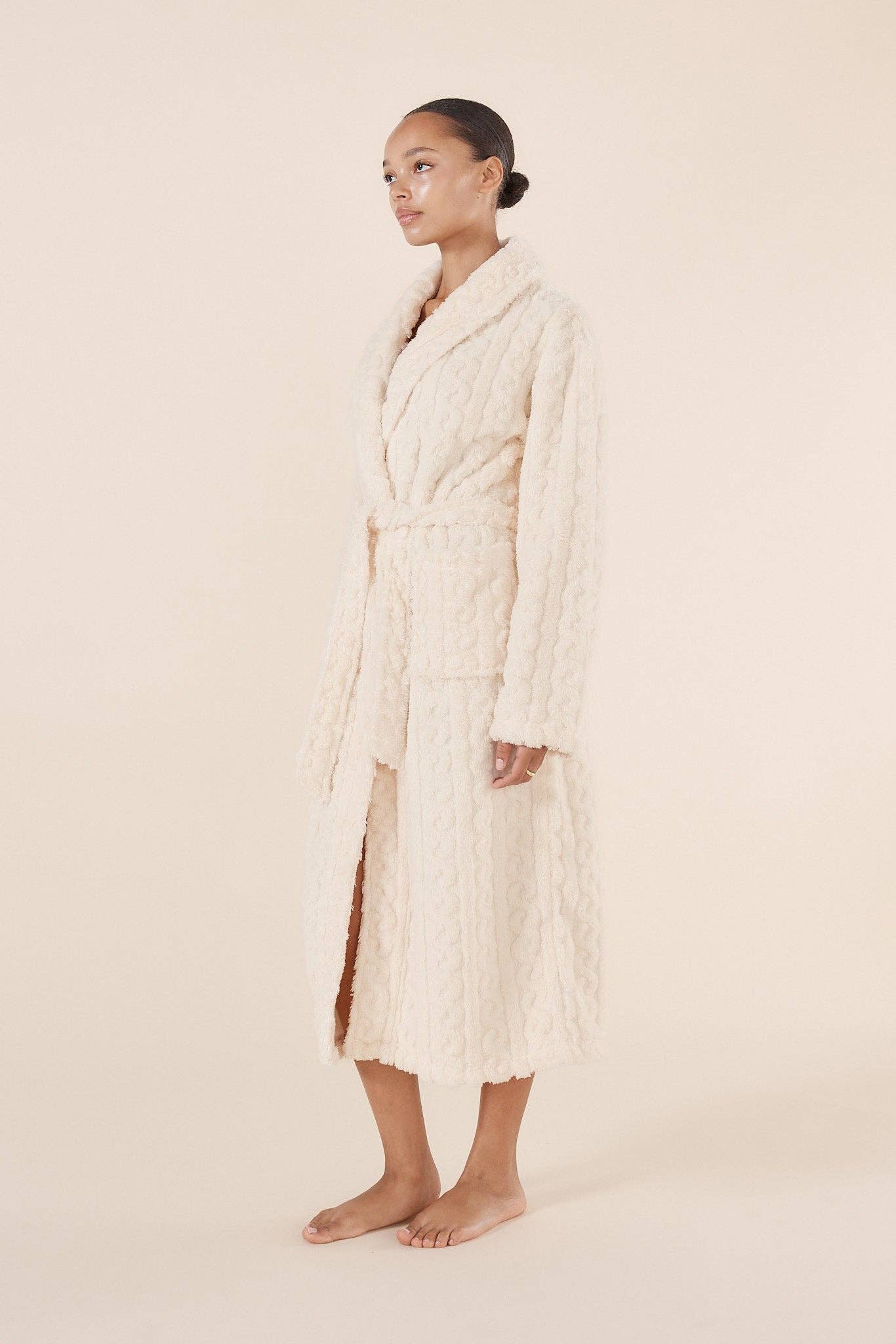 Wrap yourself in softness and warmth with the Plush Textured Robe in Ivory by Gingerlilly.