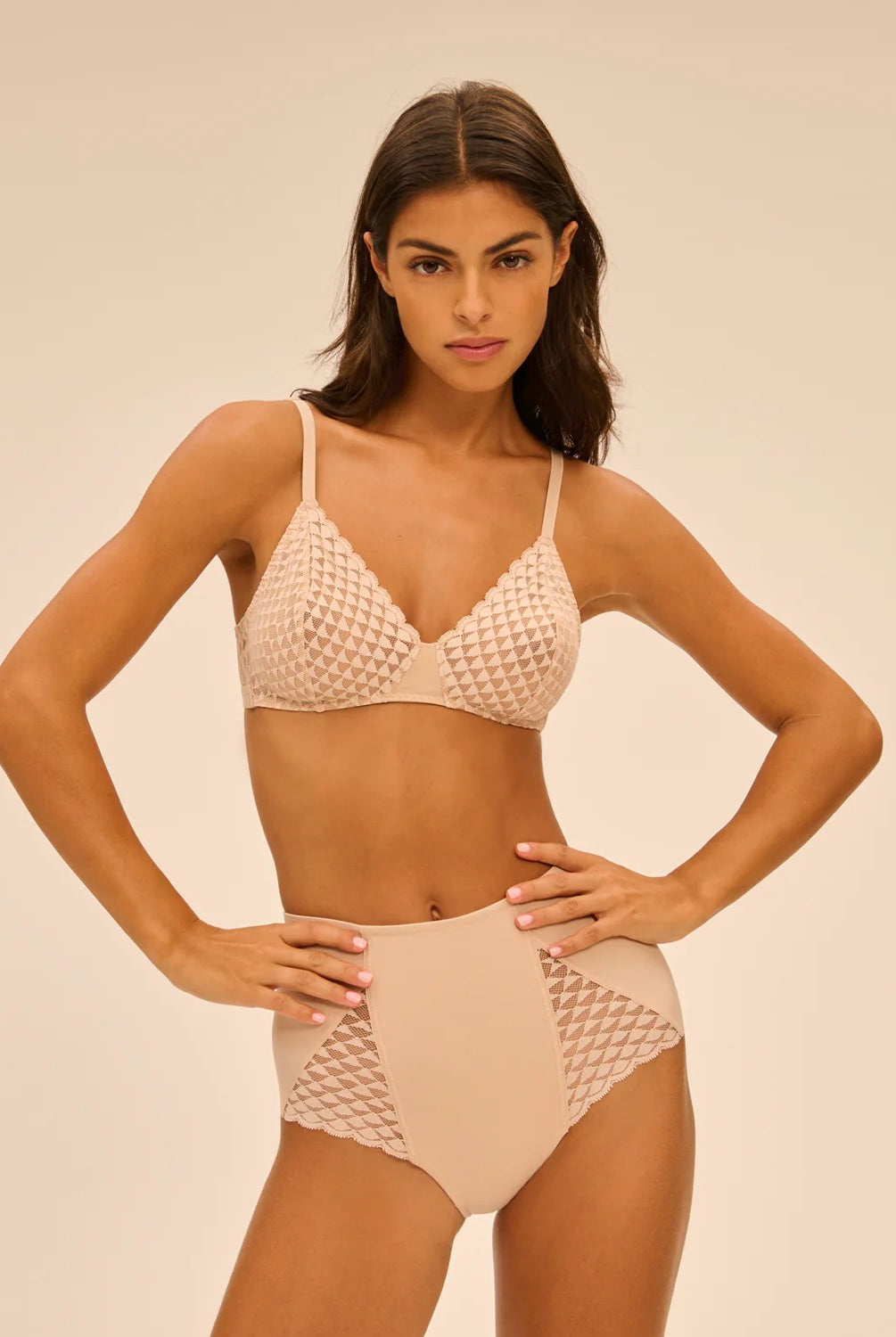A sculpted silhouette starts here. The Subtile Push-Up Bra is French craftsmanship at its finest, constructed to shape and define with progressive padding, contoured moulded cups and a smoothing knit overlay. Hidden support meets delicate lace detailing across the centre front and underbust, while the lace back is partially lined with tulle for added structure. With all the comfort of a daily bra and the structure of shapewear, it’s where form, function and femininity come together.
