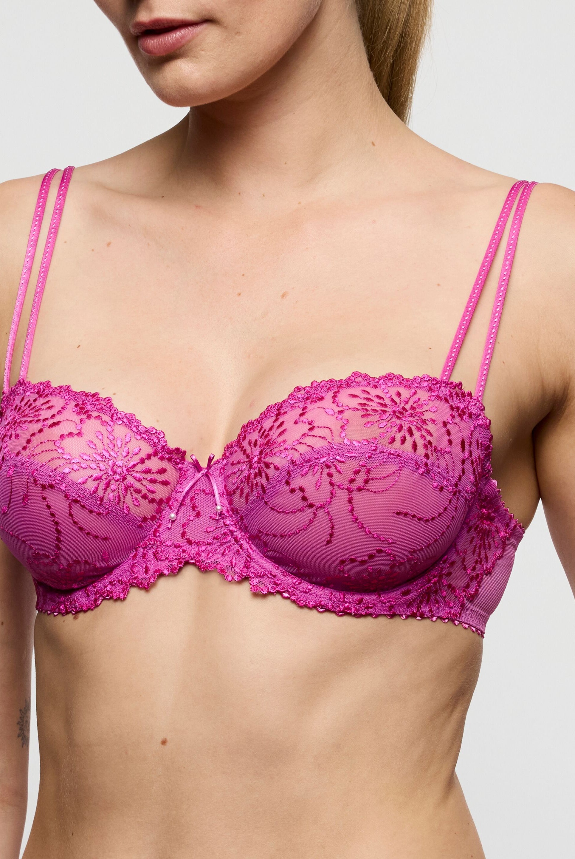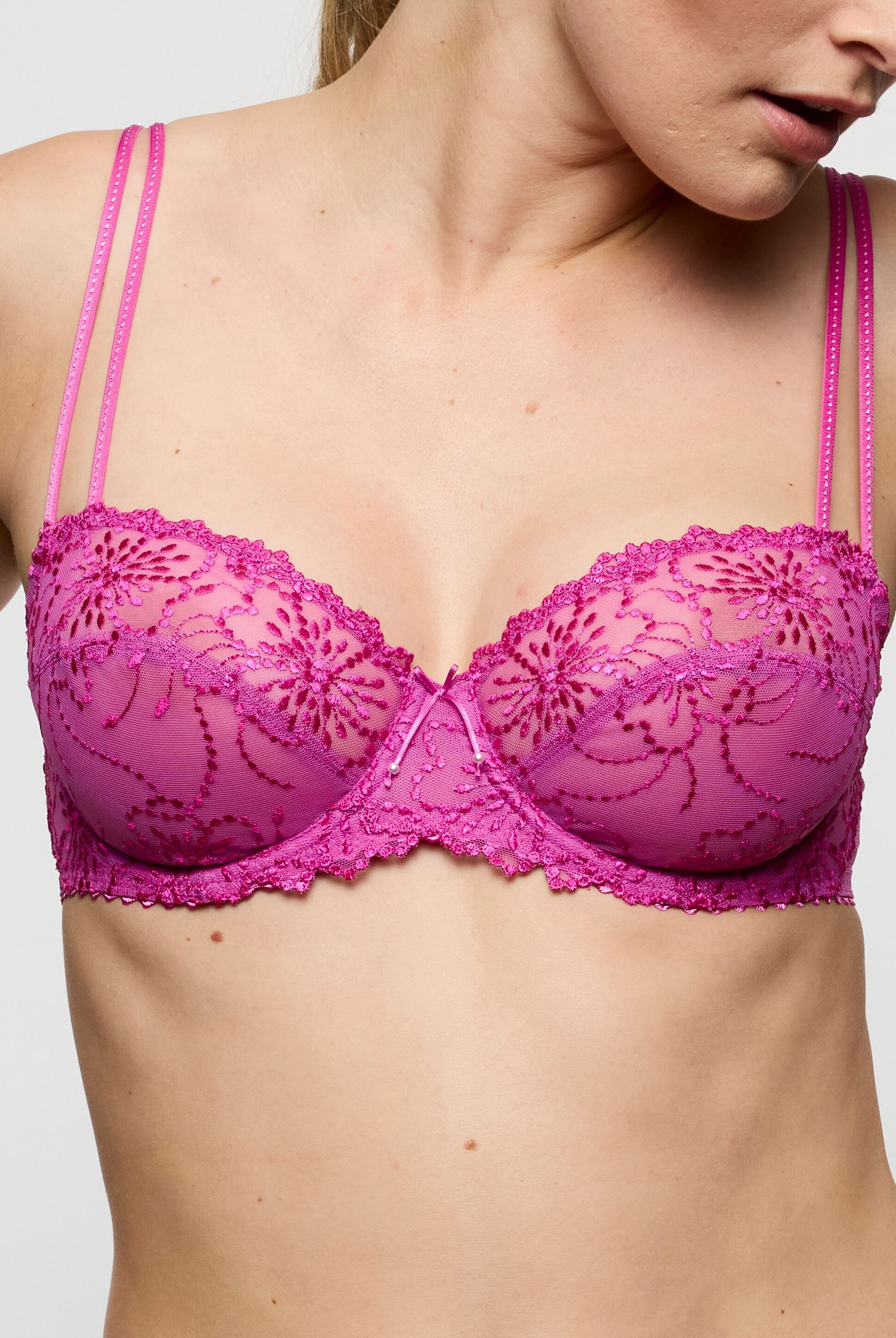 - The padded cups create a lovely round shape with delicate embroidery on the upper trim for the perfect fit