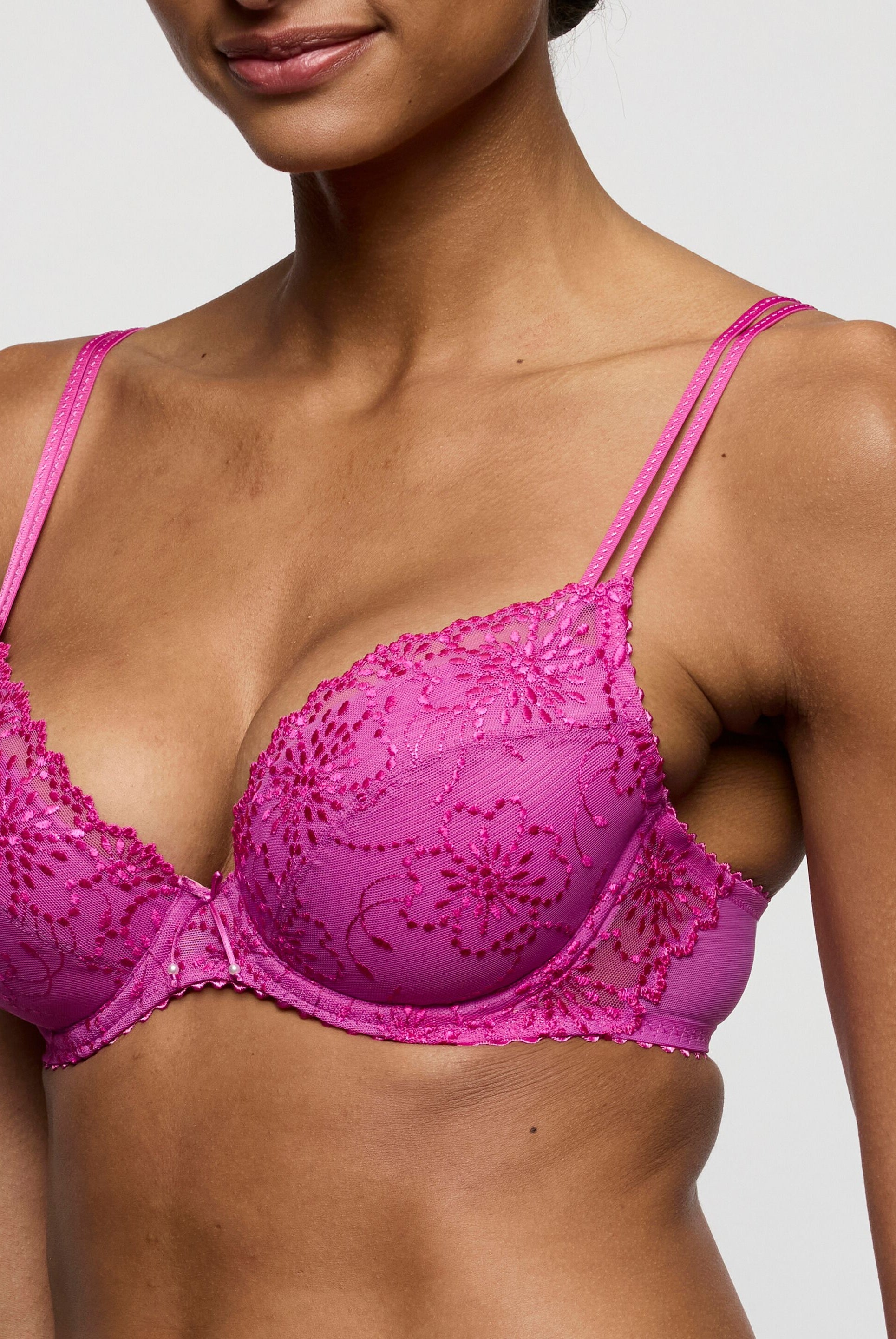 Both romantic and beautiful, the allure of the Marie Jo Jane series with its elegant floral embroidery and shimmering strings of pearls is simply irresistible. The combination of functionality with beauty sets the series apart from the rest.